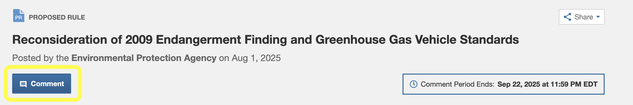 STEP 3: Click here to go to Regulations.gov and select “comment”